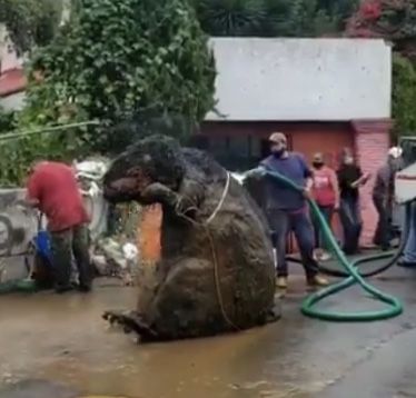 Resultado de ello fue el hallazgo de la botarga de una rata entre las 20 toneladas de basura que se removieron en la alcaldía Magdalena Contreras la cual fue removida y exhibida por elementos de Protección Civil.